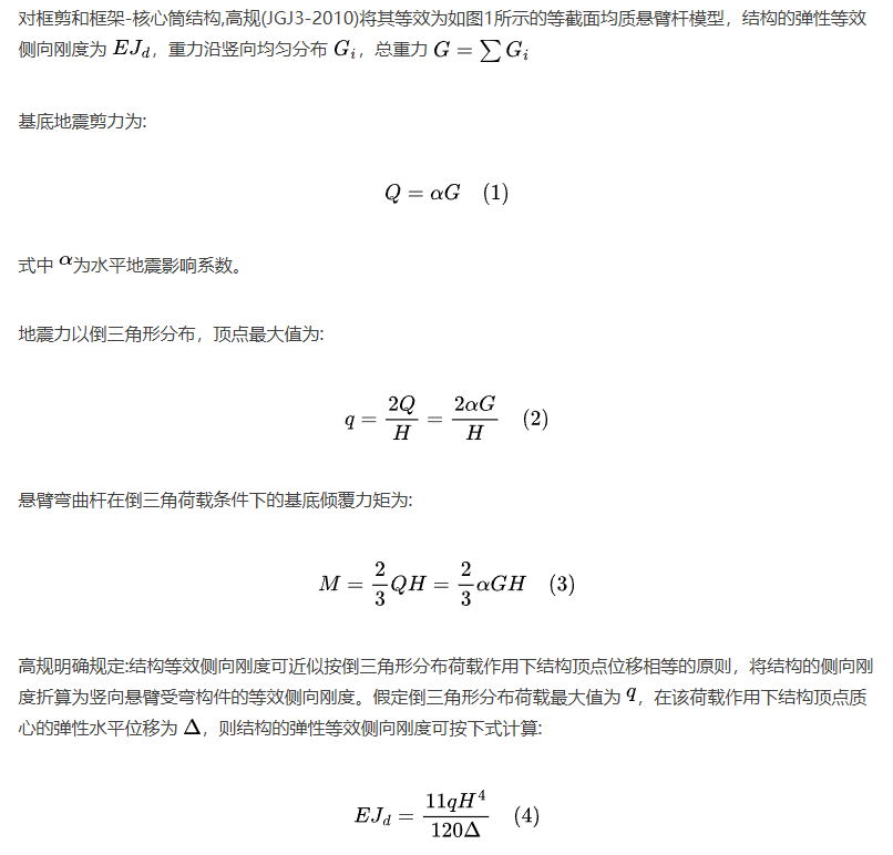 剪力墙弹性等效侧向刚度 —— 不管剪力墙实际长啥样、怎么变形,都按‘一根标准的竖向悬臂杆’(比如一根竖放的厚钢板)来算刚度,确保不同剪力墙的抗晃能力能‘公平对比’