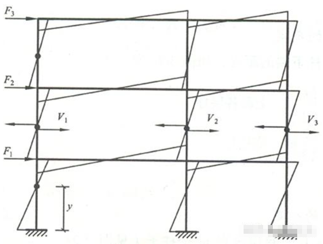 如果知道反弯点的位置和柱子的抗侧移刚度,即可求得各柱的剪力,从而求得框架各杆件的内力,反弯点法即由此而来。