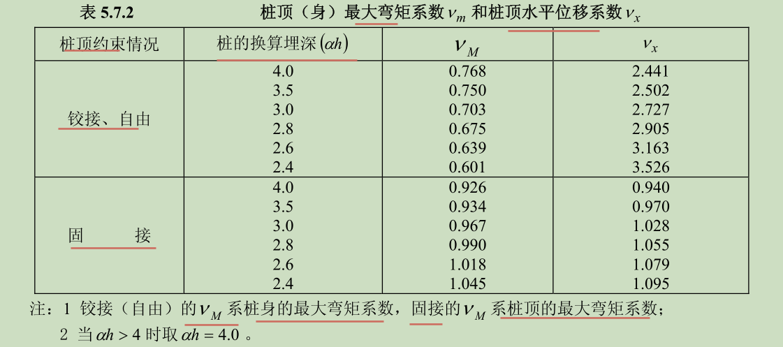 这里的 “系数” 就是根据换算深度(αh)、桩顶约束条件等,直接给出 “弯矩放大倍数”。