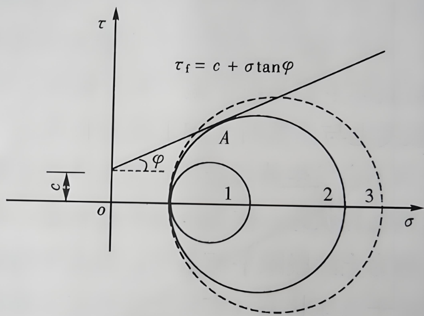 - 圆和直线相切:剪应力刚好达到抗剪强度,土壤处于 “即将被剪断” 的临界状态。