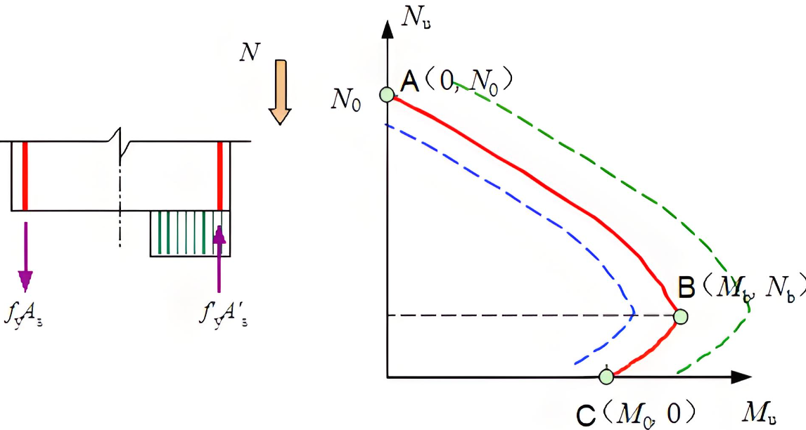 - 曲线内侧的点(N,M):构件能安全承受该组合,不会破坏。